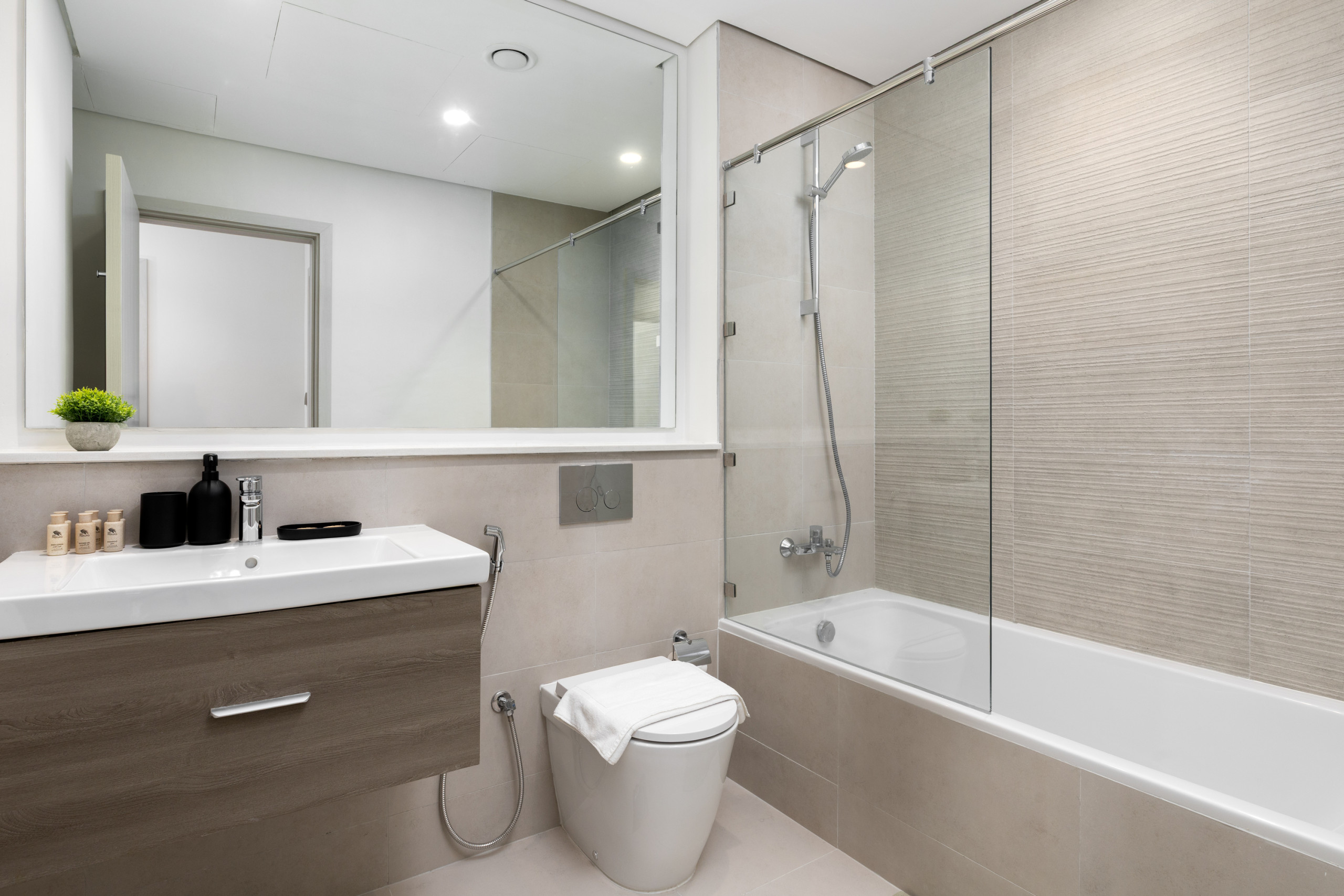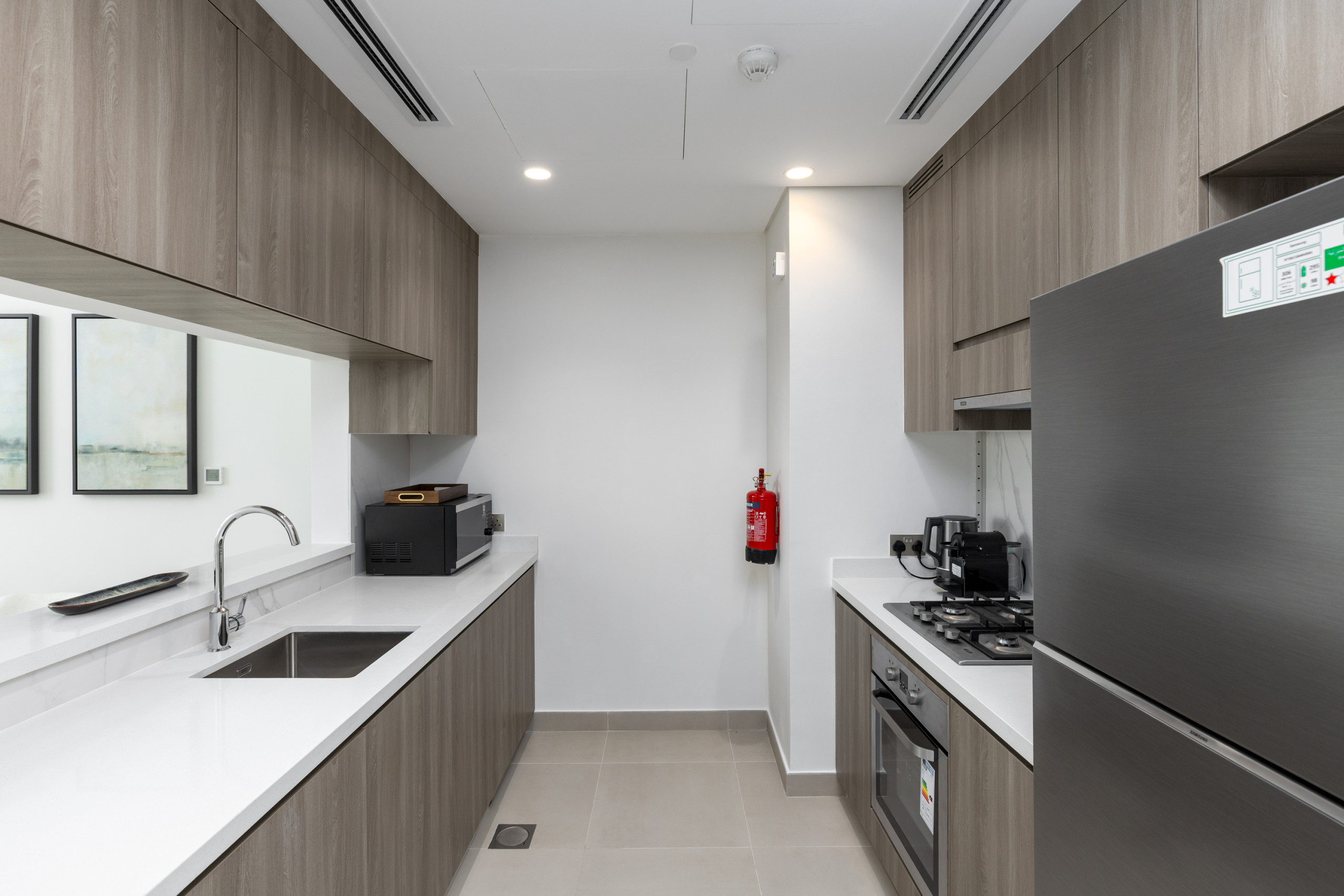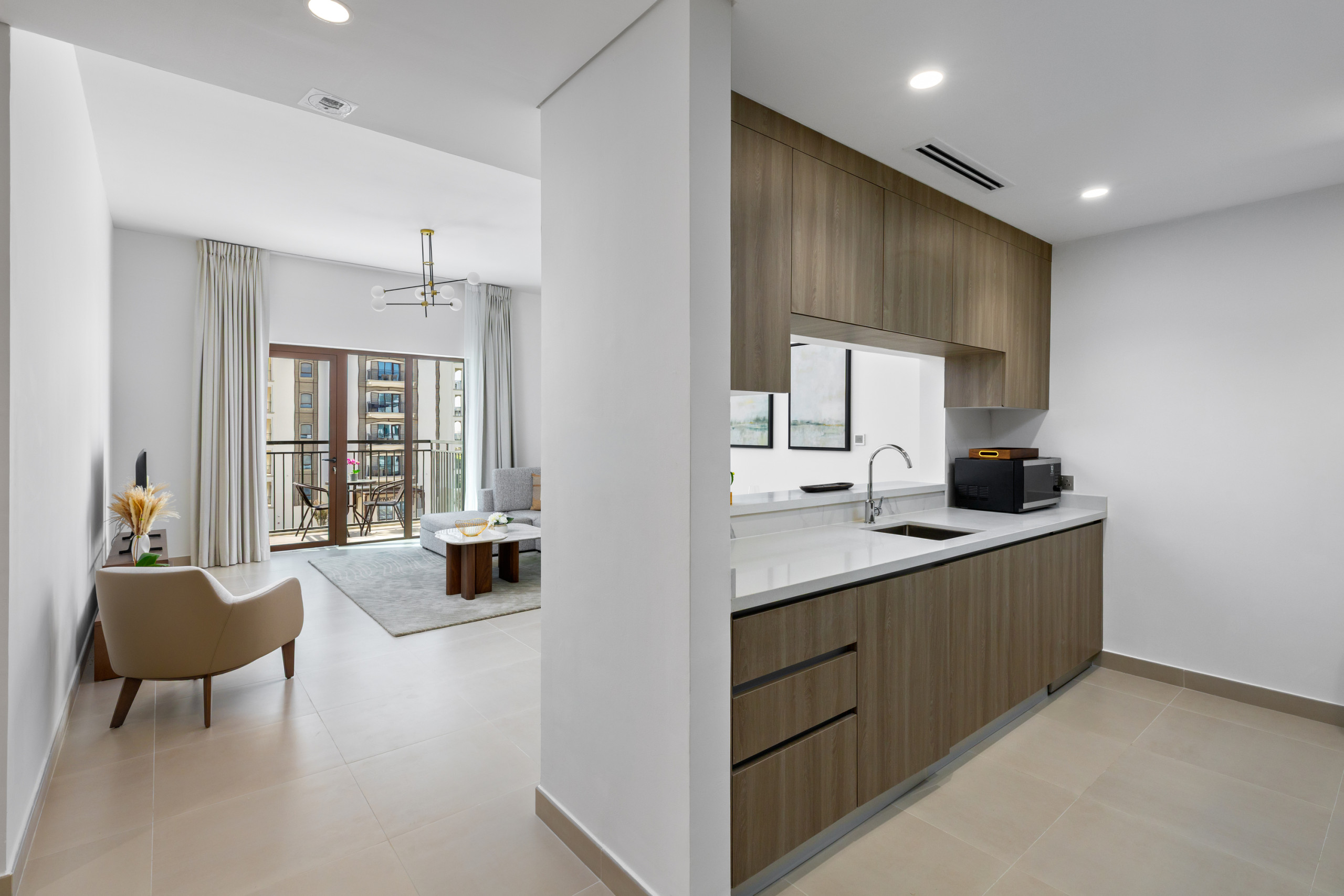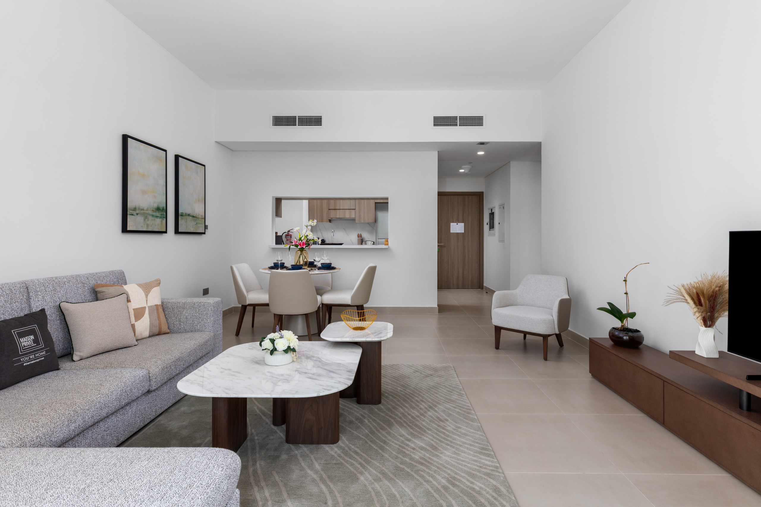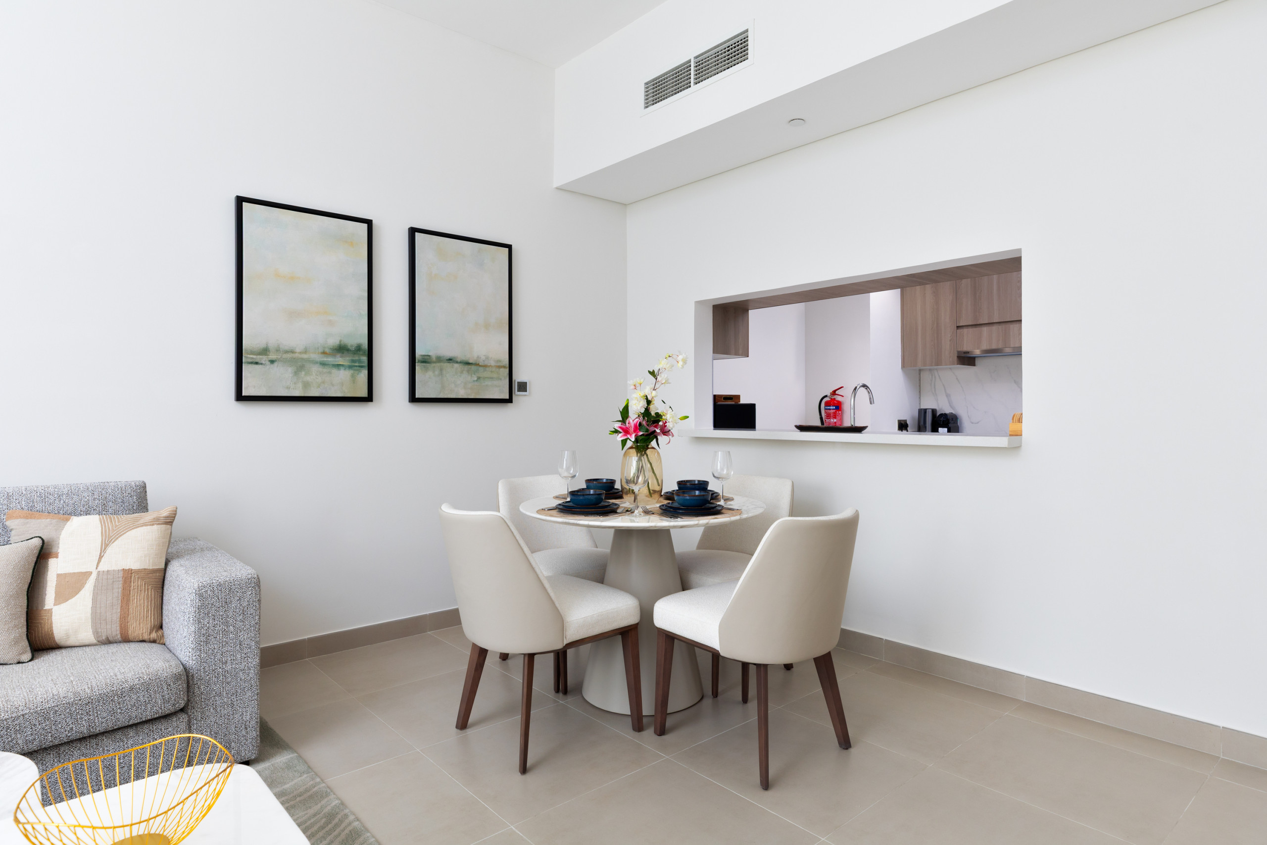 Guests will enjoy access to the building’s private pool and gym, as well as all other pools within the community. Two gyms in the community offer ladies-only timings. Engage in friendly matches at the multipurpose court (basketball, volleyball, tennis, and badminton) within the community, or practice your swing at the prestigious golf course nearby. Start your day at the tennis court, followed by a visit to one of the charming cafes in the area while your children have fun at the playground. Additionally, benefit from a business/community centre for those seeking a tranquil space to study, work, or simply relax. Benefit from complimentary garage parking for one vehicle, unlimited shaded outdoor free parking and 24-7 building security for your peace of mind.