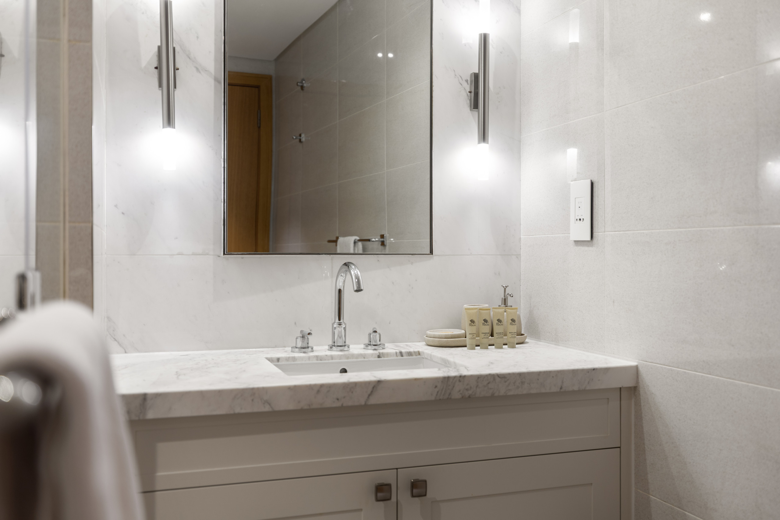 The bedroom is situated adjacent to the living area and with its fresh Balinese decor, it features soft lamp lighting, a king-size bed with premium bedding, and large fitted wardrobes. Wake up to stunning city views every day and feel wrapped up in all comforts that this apartment offers. The ensuite bathroom features a large walk-in shower and a sumptuous vanity unit with top-quality finishings.